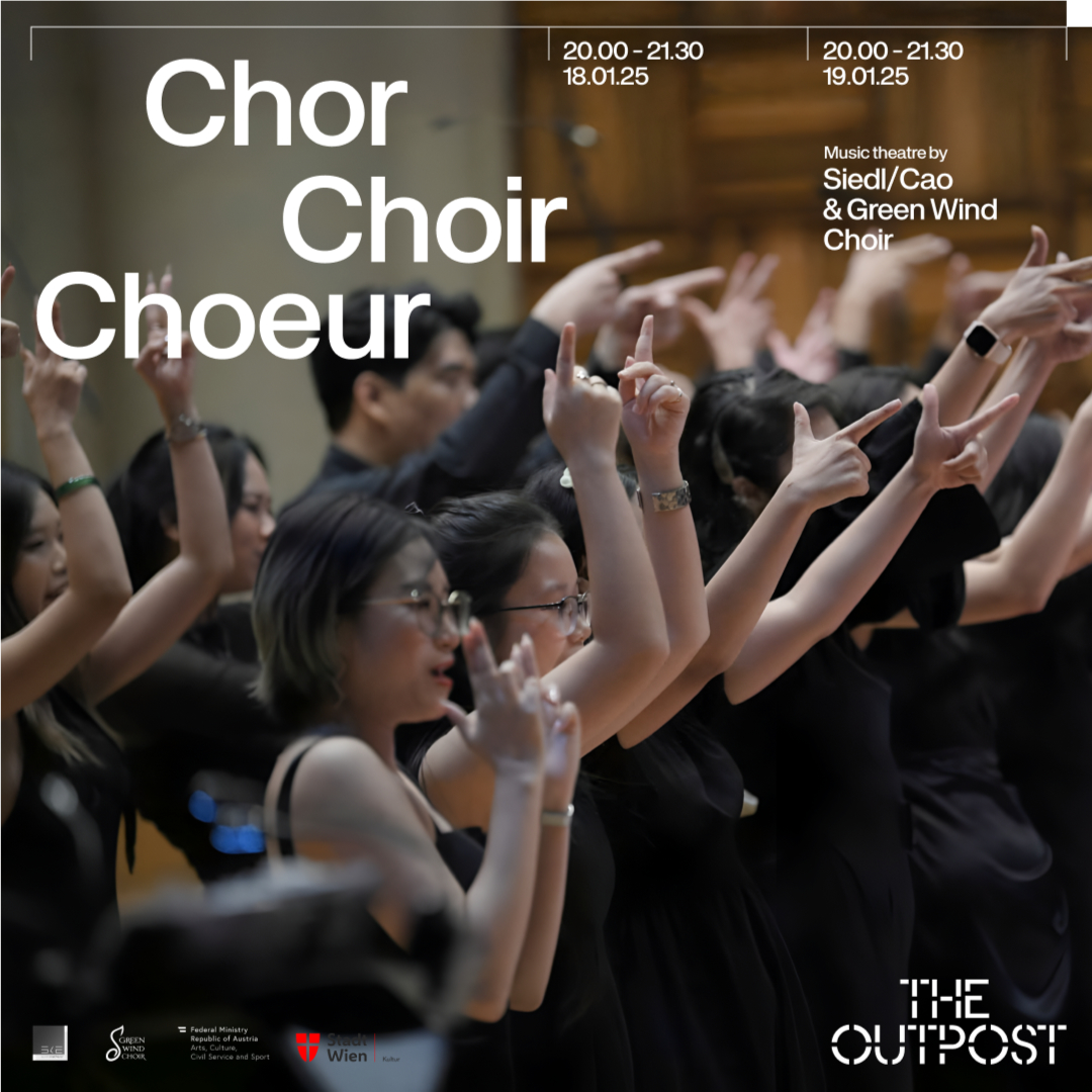 Chor Choir Choeur is an on-going project that focuses on the process-oriented facets of choir practice. It comprises a collection of compositions by Siedl/Cao for multiple voices in specific local contexts and media combinations. The overarching aim of Chor Choir Choeur is to construct an architecture that enables the natural unfolding of human expression.