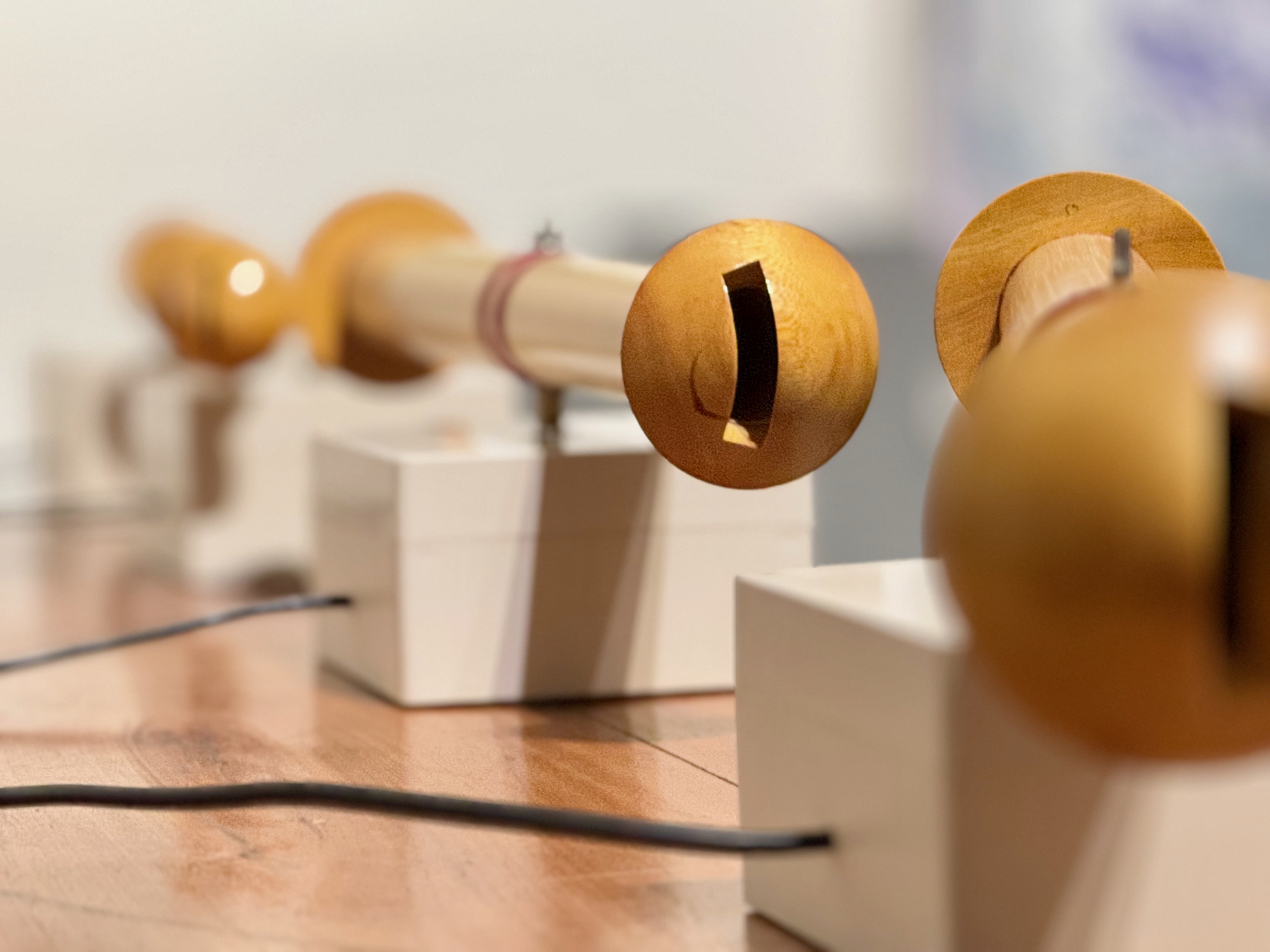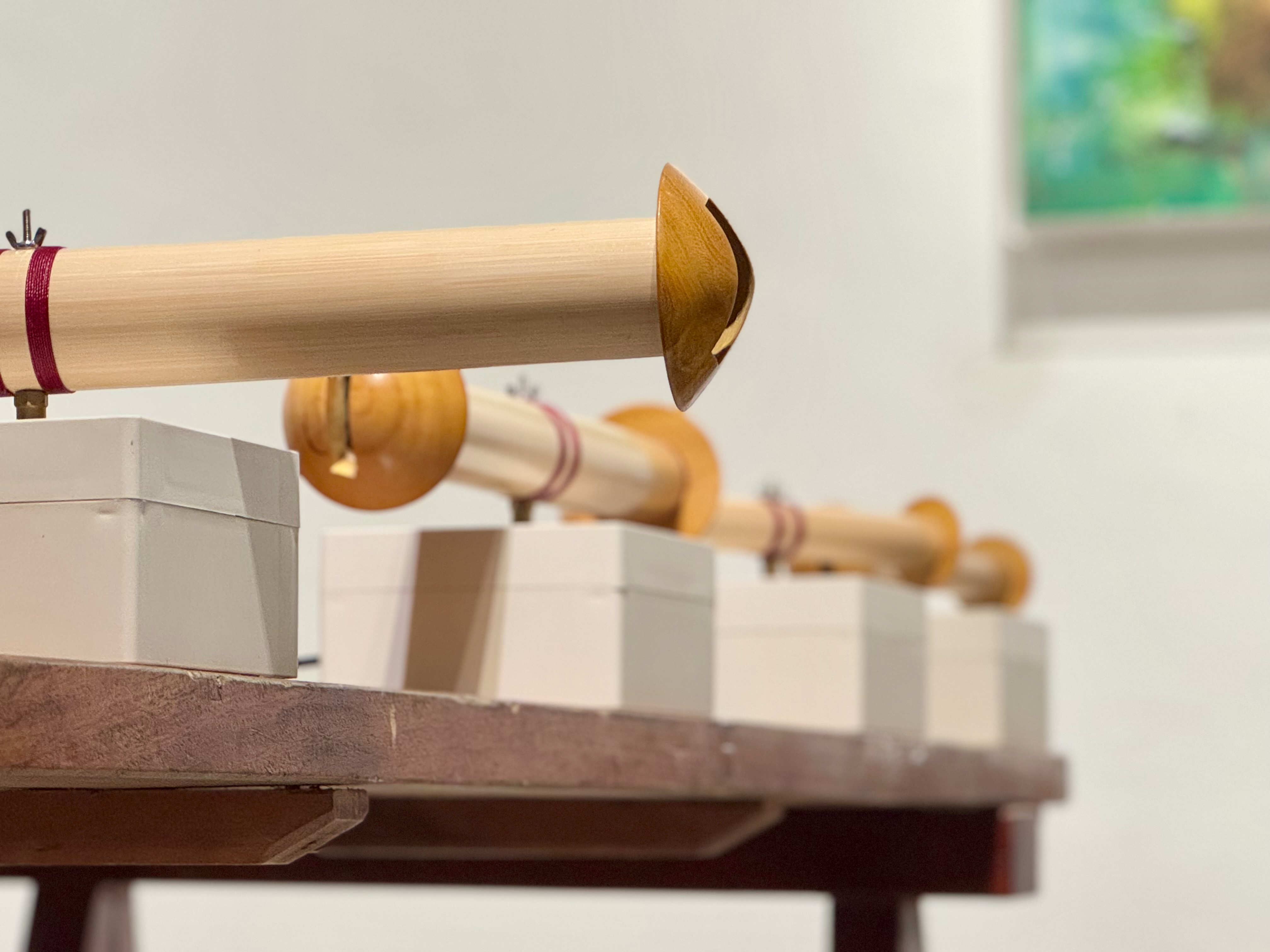 Drone & Drone is a kinetic sound installation with rotating Vietnamese aeolian flutes that is conceived and being developed by Siedl/Cao. This work centers around “drone” – both as a pilotless aircraft i.e. the future of warfare and at the same time “drone” as an ancient healing sustaining sound. „Drone & Drone“ invites contemplation on the dual nature of humanity—the potential to create beauty, goodness, and transcendence while also possessing the power to destroy both the world and ourselves.