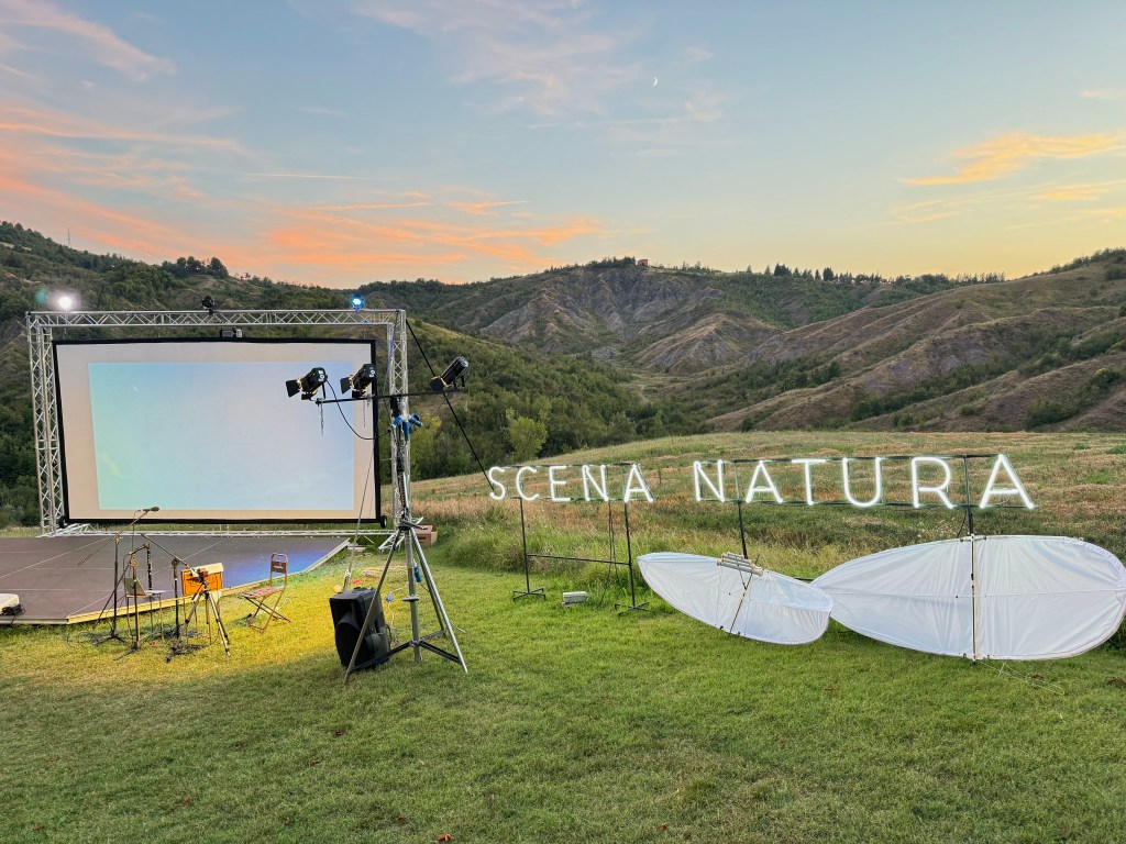The stage of Letter to Notos during Scena Natura Festival 2024, Crexida Residency, Bologna.