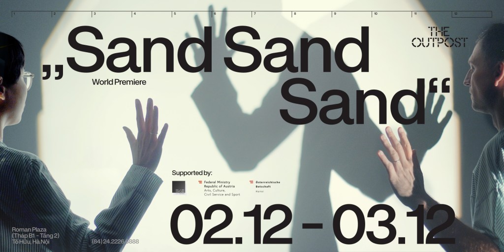 Sand sand sand is a recontextualisation of the seemingly ordinary. It brings out different meanings through different layers of contexts, where a turn-of-the-century french waltz met by an encoded robot-like communication, where childhood photos accompanied by a singing nightingale, where words are set free to the air amid the music of „The blue Danube“ and New Years firecrackers, where found postcards from Austria and Vietnamese poetry coincide with a flock of flying wild geese, etc.